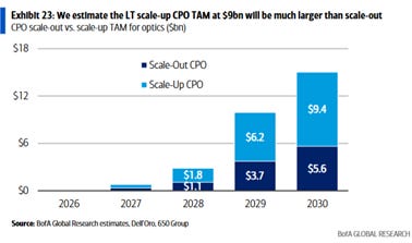 We will make an even bolder assumption: the InP substrate market grows 10x to a $2 billion TAM by 2030. We think a $2bn InP industry TAM is more than justified, given that the entire Co-packaged optics industry (which has been the primary driver of the recent increase in share price of the sector) is only expected to reach around ~$10bn by 2030, according to the most recent analyst forecasts. As highlighted above, the InP substrate production is only the first of many stages in the production of optical solutions.