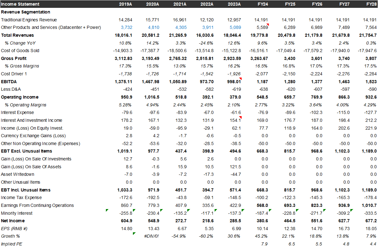 Conservative assumptions (¥1.2m RMB/engine, 30% incremental operating margins, 15% tax rate) suggest every 100 incremental engines manufactured by CYD could add up to ~¥23m in net income for CYD equity holders, with a pathway to 1000 engine sales by 2027, this could represent ¥230m net income.