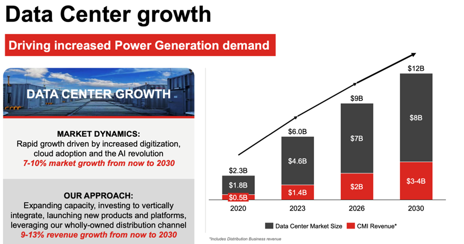 Cummins estimates the data center TAM at $6 billion in 2023, growing to $12 billion by 2030 (2). This discrepancy versus my bottom-up estimate arises from Cummins’ integrated business model, which includes installation and long-term service contracts as part of its group revenues. Currently, CYD mainly manufactures diesel engines, relying on third parties to produce gensets.
