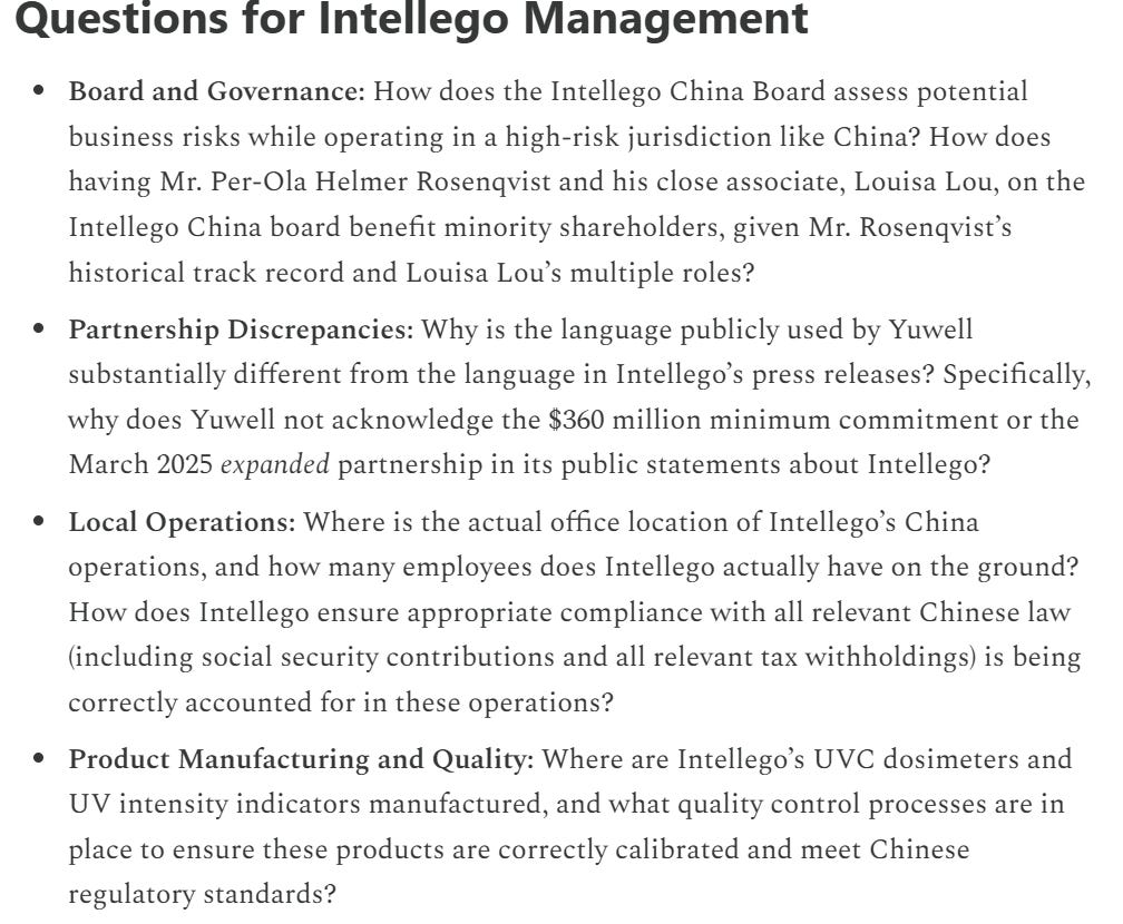 Intellego has since engaged KPMG to conduct a forensic review of its accounting practices and capital-market communications. We hope this process will provide clear, verifiable answers for the company’s shareholders.